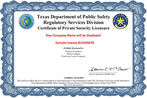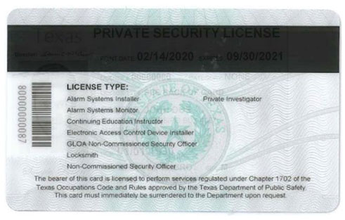 Texas DPS Private Security Division regulates Company License and Installer Licenses